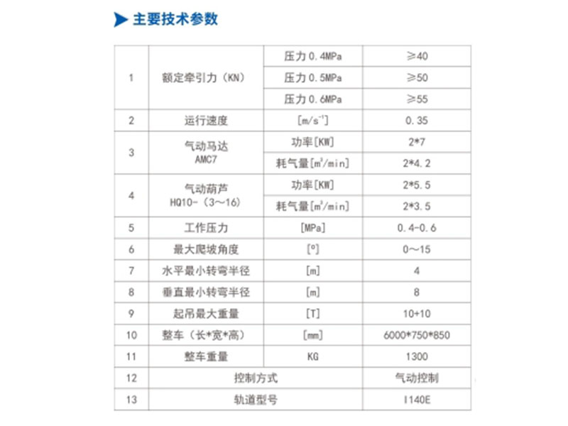 承載小車、連接裝置、氣動(dòng)葫蘆*2(10 噸)等。